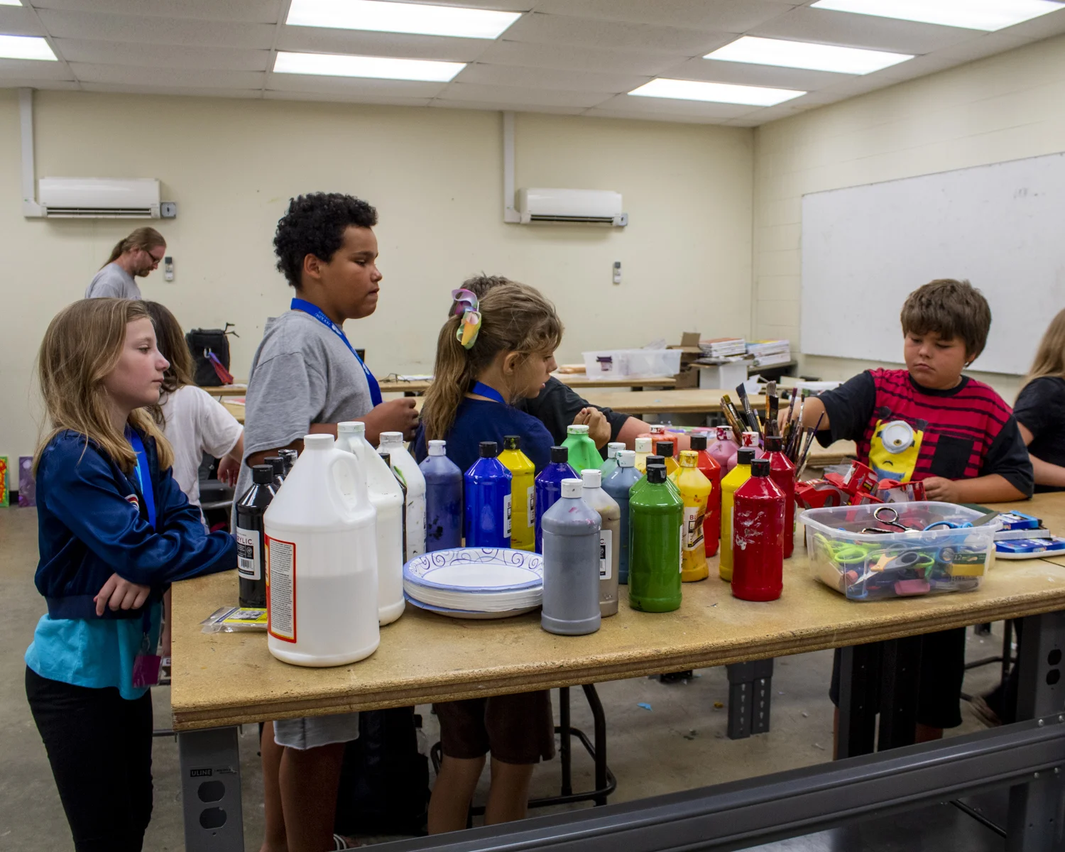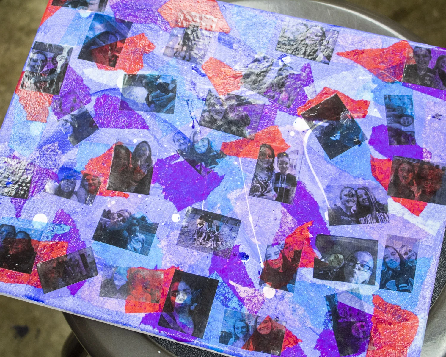Collage has been used in fine art for many generations, notably by Pablo Picasso, Kurt Schwitters, Man Ray, and Georges Braque among others. Our collage, using primarily transparent mediums, adds depth and meaning to a piece. Peeling the onion comes from a common colloquialism meaning getting to know someone or something beyond surface. Peeling back the layers allows a more complex and interesting reveal. When getting to know someone, it is important that we know that people are not two dimensional, but full of hopes, dreams, phobias, wishes, and passions that we may not be privy to at first glance. Thanks to the 6 day intensive studio format of this program, we were able to explore many different mediums and overlay a great deal of personal content to the collages. Each day allowed a new layer of the onion to be laid in transparency. We did extensive brainstorming, explored expressive color in acrylic, the decorative aspects of decoupage with colored tissue, photo compositing with image transfers, and line work or text with paint pens. What resulted was a wonderfully complex image that continues to reveal itself long after your first glance. We hope you enjoy getting to know us better through our art!